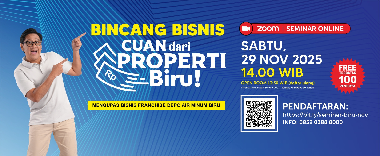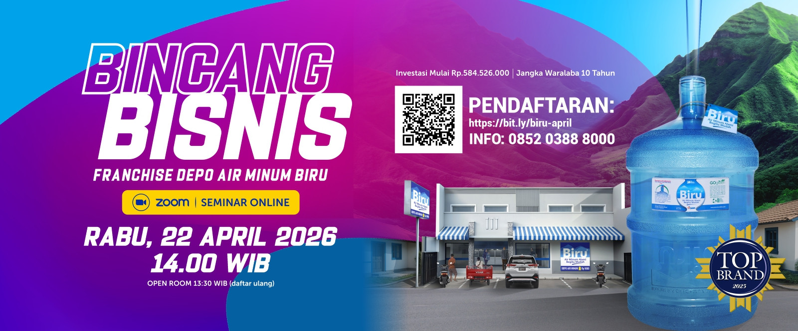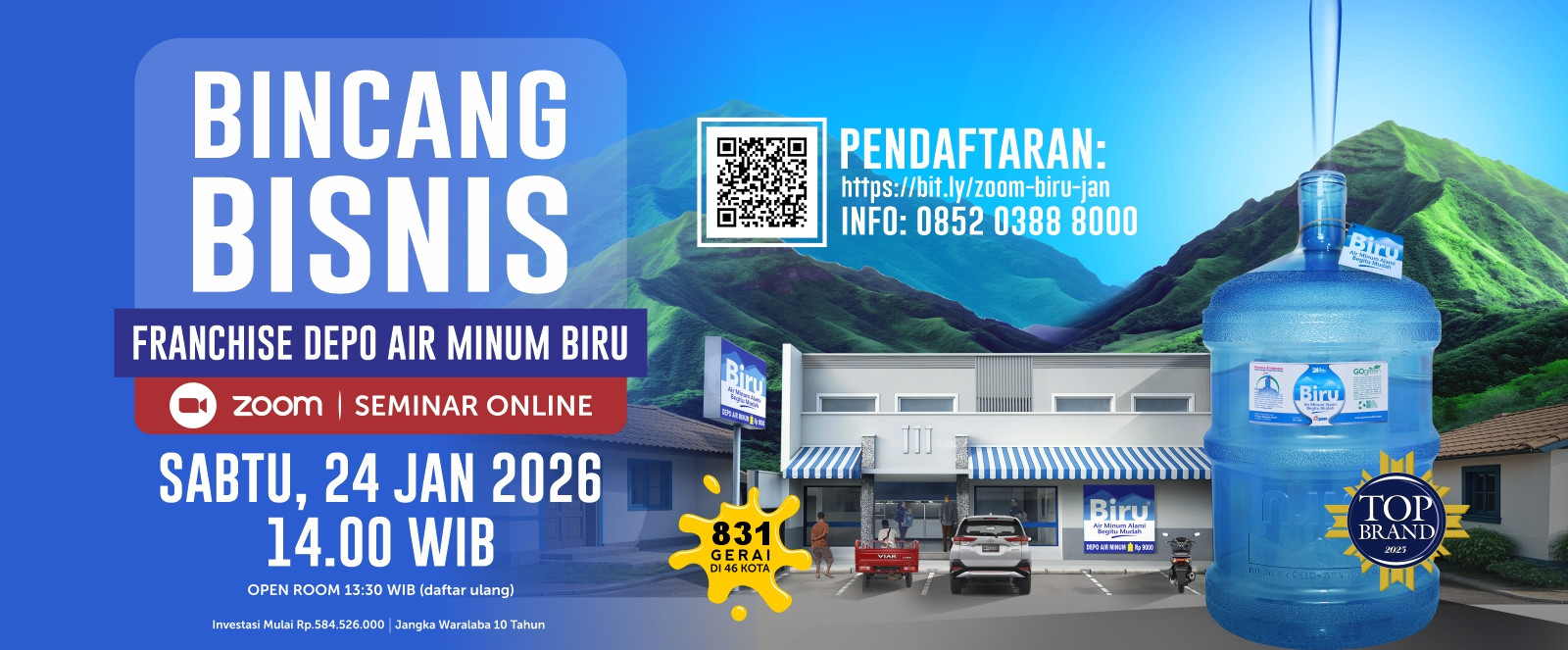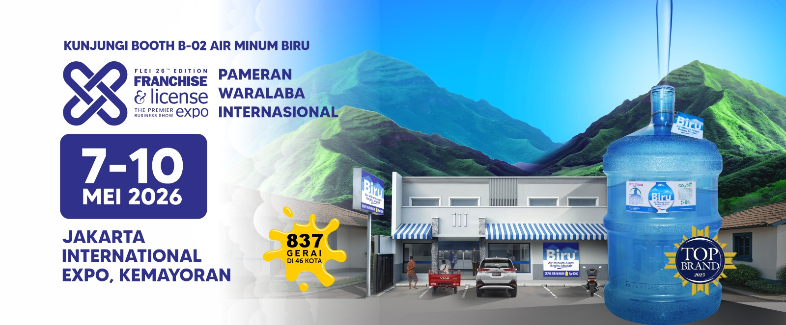 Mengusung Visi Biru yaitu “Tumbuh Memimpin Pasar Air Minum Isi Ulang Melalui Penerapan Prinsip-prinsip Bisnis dan Kemanusiaan yang Benar”, Franchise Biru melakukan langkah monumental sebagai yang pertama menawarkan format franchise di usaha depo air minum di Indonesia (Rekor Muri 2007). Dengan mengedepankan keunggulannya dalam penguasaan 100%-Teknologi-Ozon yang otentik (Rekor Muri 2007) yang menjamin kualitas teknis dari air minum produksinya, dan disertai bukti-bukti keberhasilan usaha yang nyata, Franchise Biru terus tumbuh berkembang. Di bulan Agustus 2020, jaringan waralaba Biru berhasil menembus batas bench-mark 500 gerai Biru, yang tersebar di 9 propinsi dan 36 kota di Indonesia.