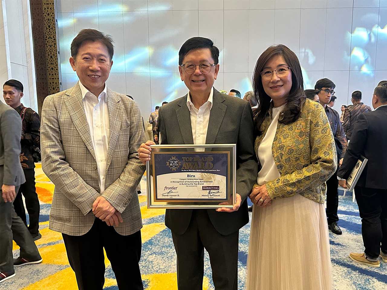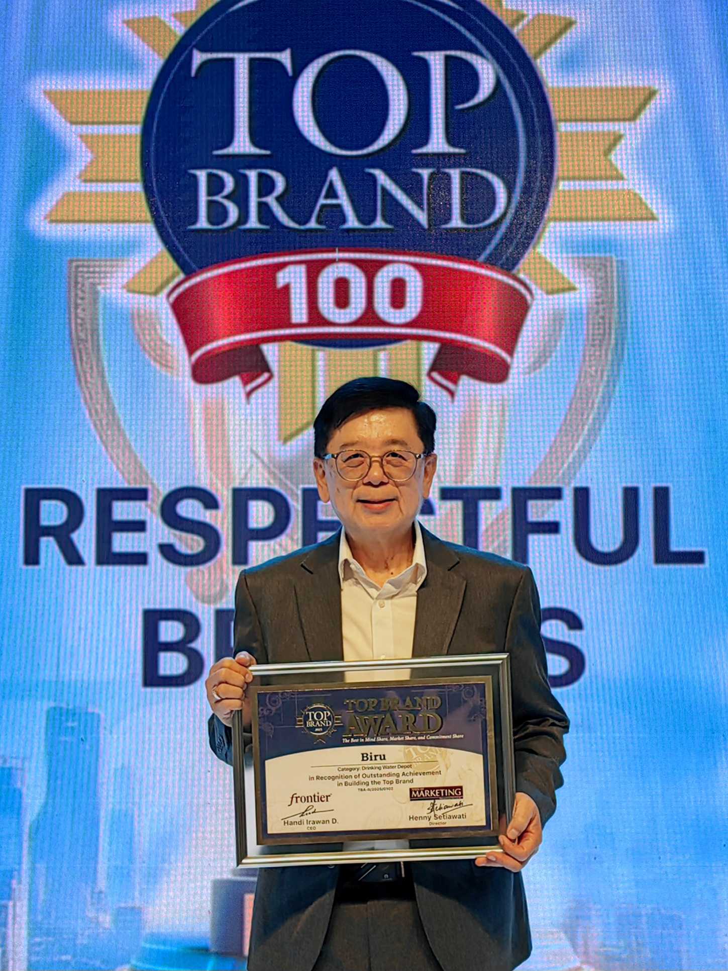 Handi Irawan D., Founder Top Brand Award, turut memberikan apresiasi, “Top Brand Award adalah simbol kepercayaan konsumen yang dibangun dari konsistensi kualitas dan relevansi merek di pasar. Pencapaian ini membuktikan bahwa Air Minum Biru memiliki kualitas produk yang baik dan konsisten yang didukung manajemen yang inovatif. Semoga prestasi ini dapat terus dipertahankan, karena merek adalah aset tak berwujud yang sangat berharga. Kepercayaan konsumen terhadap Biru akan membuat mereka terus memilih dan membeli Biru di masa mendatang.”
