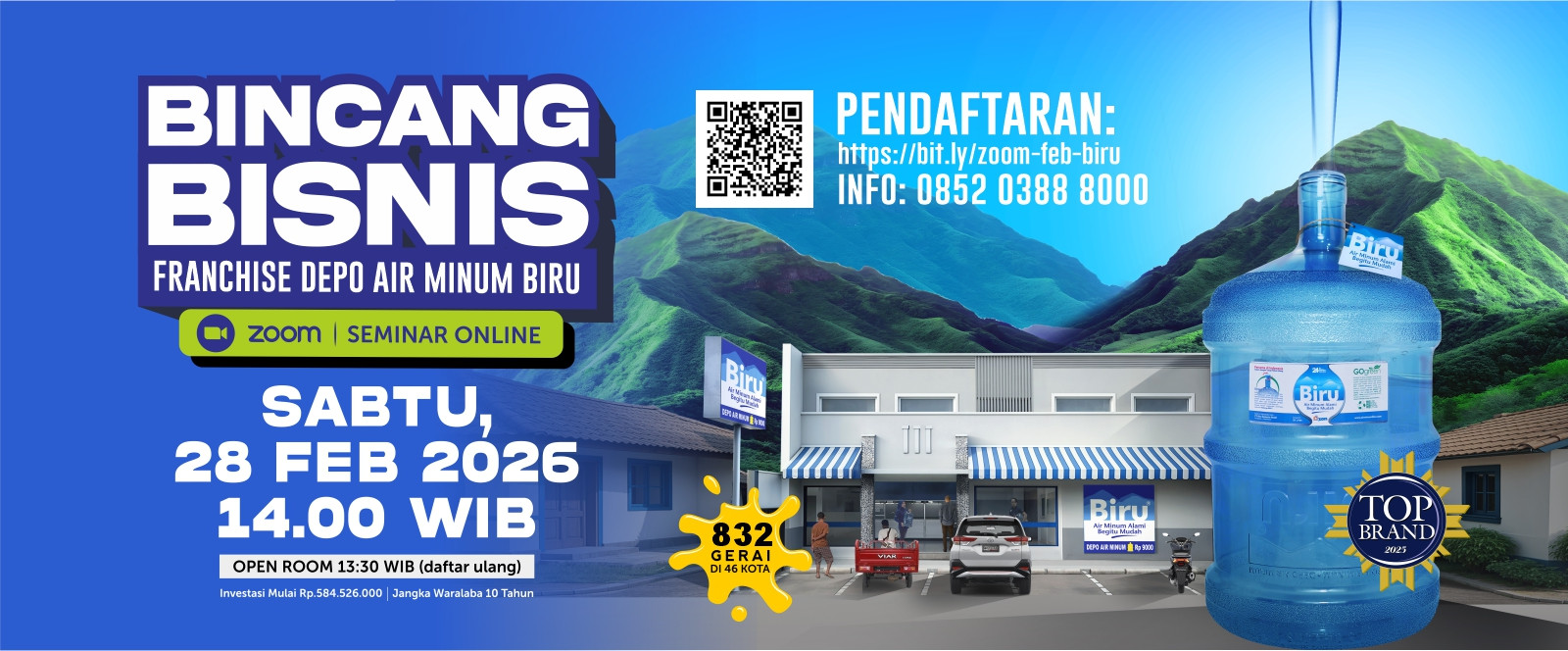 Mengusung Visi Biru yaitu “Tumbuh Memimpin Pasar Air Minum Isi Ulang Melalui Penerapan Prinsip-prinsip Bisnis dan Kemanusiaan yang Benar”, Franchise Biru melakukan langkah monumental sebagai yang pertama menawarkan format franchise di usaha depo air minum di Indonesia (Rekor Muri 2007). Dengan mengedepankan keunggulannya dalam penguasaan 100%-Teknologi-Ozon yang otentik (Rekor Muri 2007) yang menjamin kualitas teknis dari air minum produksinya, dan disertai bukti-bukti keberhasilan usaha yang nyata, Franchise Biru terus tumbuh berkembang. Di bulan Agustus 2020, jaringan waralaba Biru berhasil menembus batas bench-mark 500 gerai Biru, yang tersebar di 9 propinsi dan 36 kota di Indonesia.