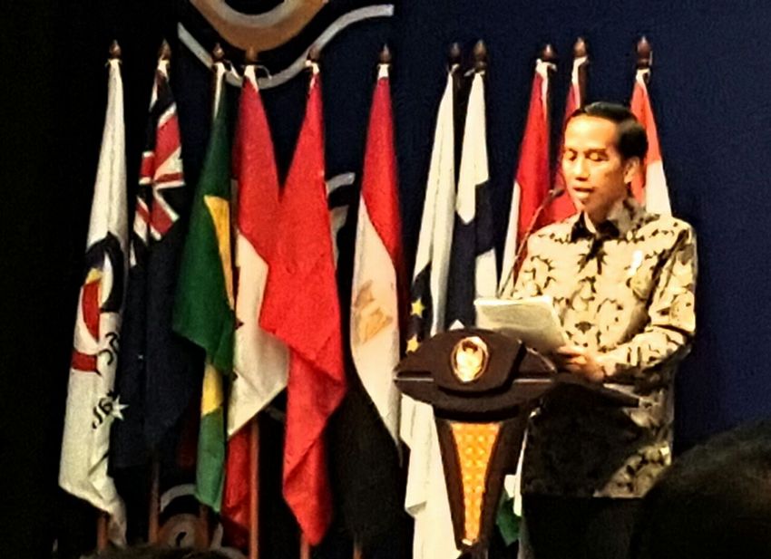 Para delegasi World Franchise Summit Indonesia berfoto bersama Presiden RI Joko Widodo.
