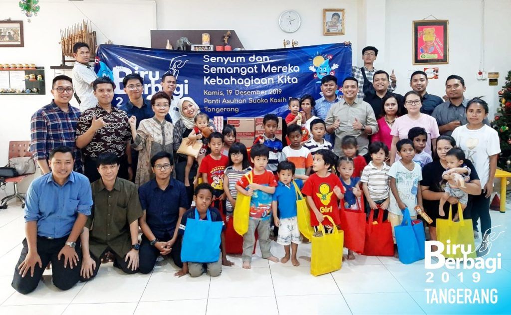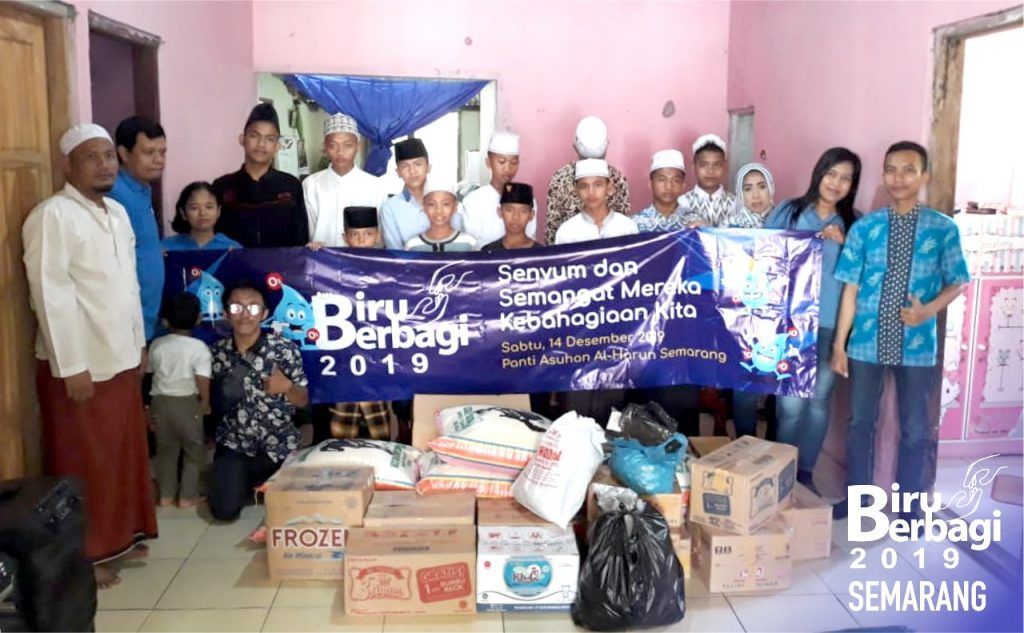 Kegiatan Biru Berbagi 2019 kali ini mengangkat tema “Senyum dan Semangat Mereka, Kebahagiaan Kita”. Kegiatan Biru Berbagi ini serempak dilaksanakan di 7 kota yaitu, Dusun Cepit Desa Klitih Jombang, Panti Sosial Tresna Werdha Laswi Bandung, Panti Asuhan Al-Harun Semarang, Panti LKSA Muawanah Cirebon, Panti Asuhan Mata Hati Yogyakarta, Panti Al-Hidayah Bekasi, dan Yayasan Panti Asuhan Suaka Kasih Bunda Tangerang. Kepedulian Keluarga Biru dalam kegiatan Biru Berbagi ini ditandai dengan penyerahan sumbangan berupa instalasi jaringan perpipaan, sembako, pakaian layak, dan peralatan sekolah, sumbangan elektronik, serta sejumlah uang sumbangan.