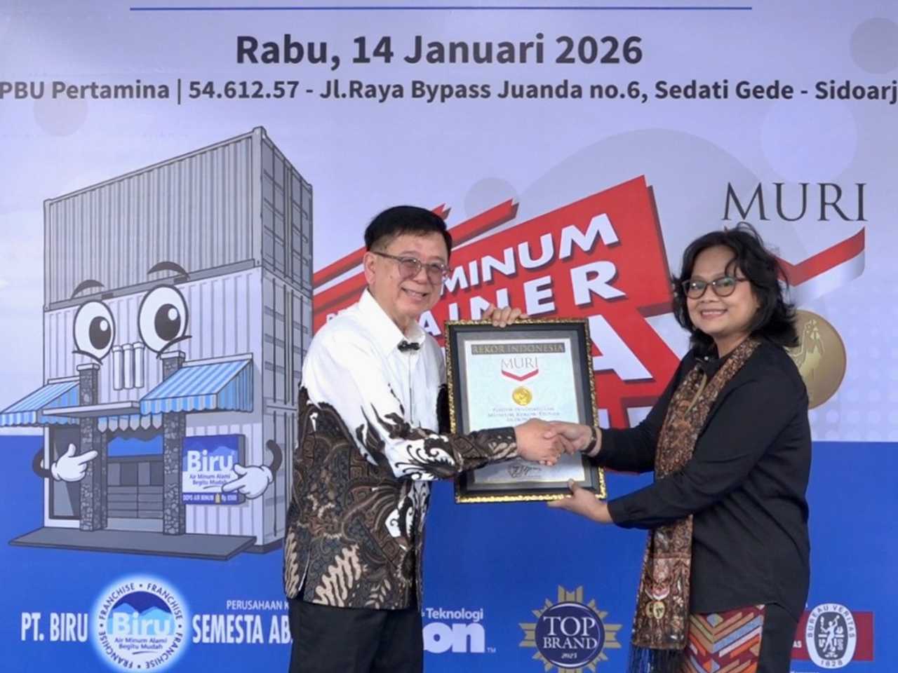 Peluncuran Biru Container ini juga memperoleh rekor dari Museum Rekor Dunia Indonesia (MURI) sebagai Depo Air Minum Kontainer Pertama. Pencatatan tersebut mencerminkan inovasi format dan model bisnis Biru Container dalam memperluas integrasi layanan air minum yang berkualitas dengan harga murah. Lebih dari sekadar pengakuan, pencatatan ini memperkuat upaya pengembangan industri depo air minum isi ulang melalui standar kualitas yang konsisten dan kesiapan model operasional untuk dikembangkan secara berkelanjutan dan inovatif.
