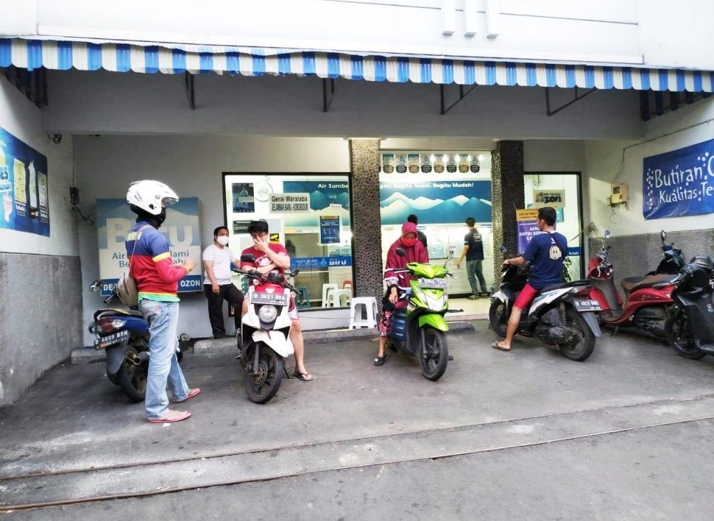 Atas ketaatannya mengantri berjarak di Depo Air Minum Biru, kami ucapkan terima kasih.
