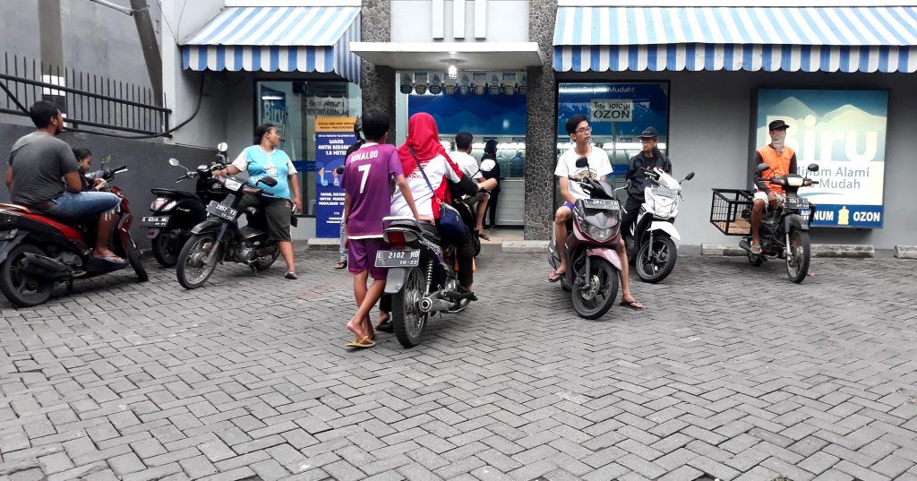 Cegah Penularan Covid 19, Antri Isi Ulang Air Minum Biru Harus Berjarak 1,8 Meter