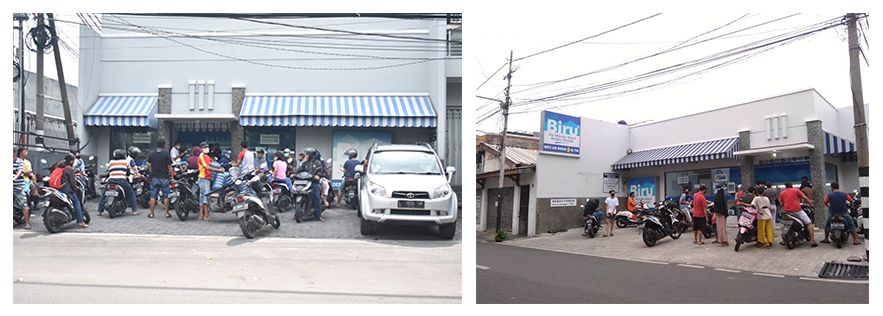 Salah satunya yang terlihat di kawasan Depo Air Minum Biru Menganti Karangan. Antrian pelanggan memenuhi halaman gerai menunggu giliran untuk dilayani. Namun demikian, terlihat peraturan antri berjarak dan menggunakan masker tetap ditaati dengan tertib oleh pelanggan untuk mencegah penularan COVID 19.