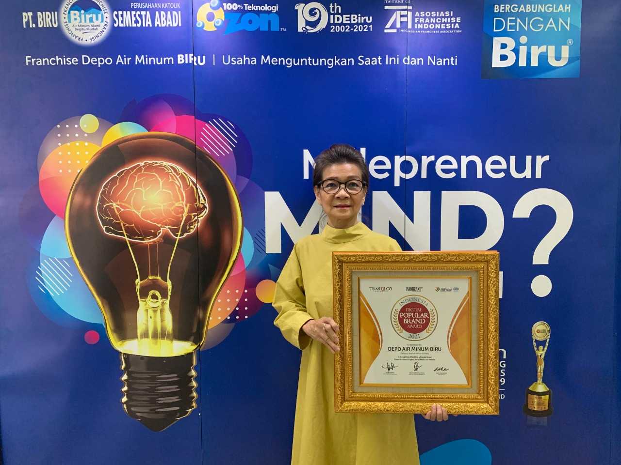 Depo Air Minum Biru kembali masuk dalam jajaran merk waralaba yang paling popular dan paling banyak dicari dalam dunia digital. Terbukti, Franchise Depo Air Minum Biru meraih penghargaan Indonesia Digital Popular Brand Award 2021 untuk kategori Depo Air Minum (Isi Ulang). Pencapaian keberhasilan ini merupakan penghargaan yang ke lima kalinya diraih oleh Franchise Depo Air Minum Biru. Penghargaan yang digelar oleh FranchiseGlobal.com bersama Tras N Co Indonesia dan IMFocus Digimarketing Consultant ini diberikan kepada Helena Wongkar, Executive Marketing Franchise Biru melalui aplikasi zoom meeting pada Kamis (28/10/2021).