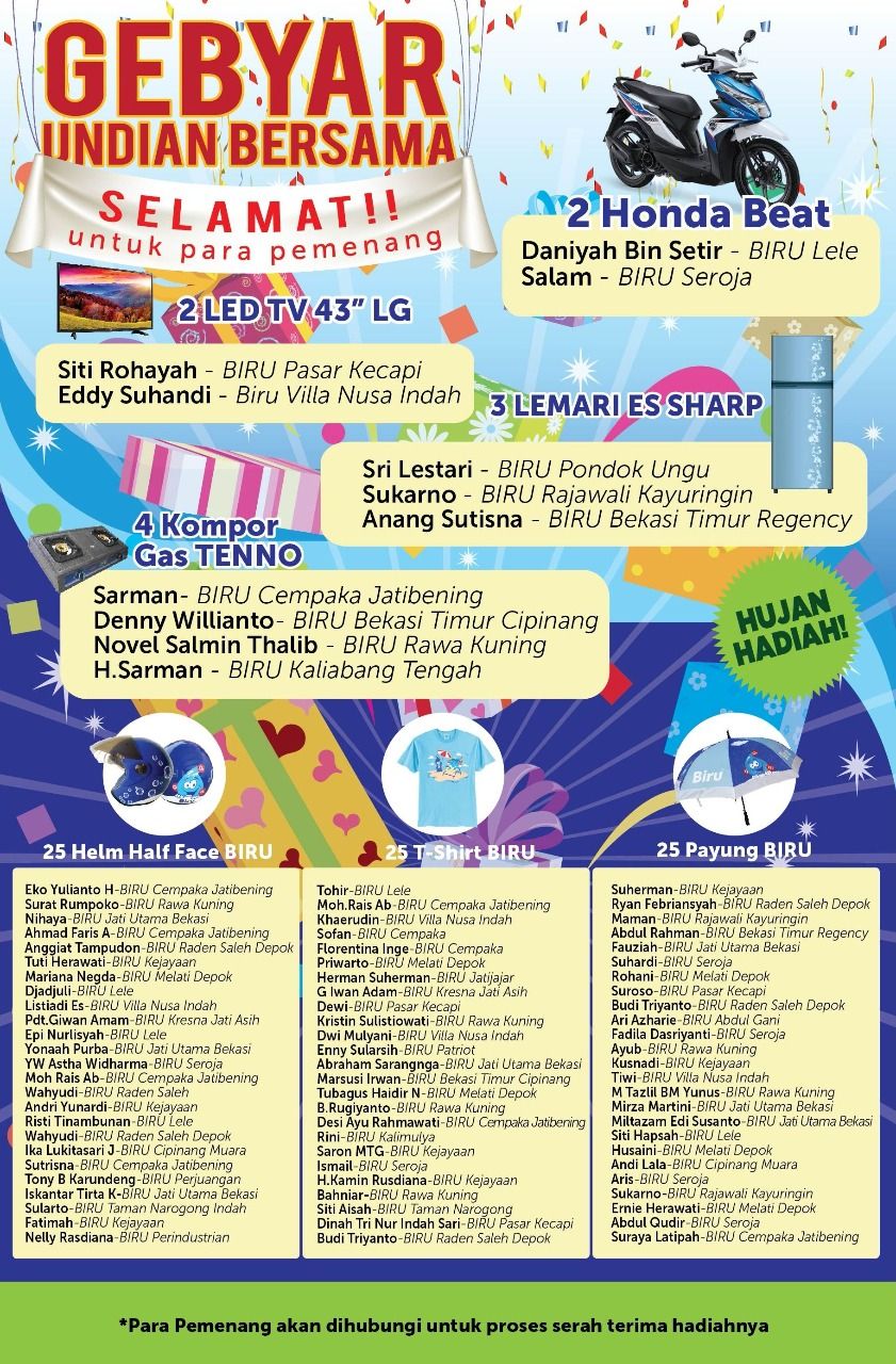 Ini Dia Pemenang Gebyar Undian Bersama Air Minum Biru Wilayah Bekasi