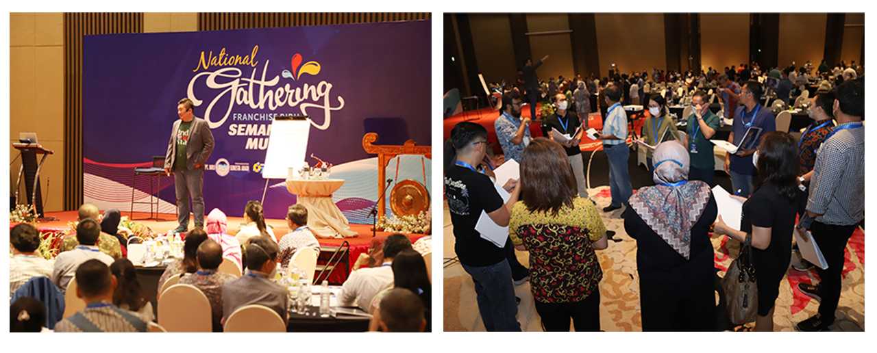 Perhelatan National Gathering Franchise Biru 2022 sukses digelar. Acara yang sudah diadakan ketiga kalinya ini mengangkat tema “Semangat Muda”. Sebanyak 94 Franchisee bersama pasangan dan anaknya yang berusia 20 tahun keatas hadir dalam acara yang berlangsung di Golden Tulip Holland Resort, Batu, Malang selama tiga hari (14-16 Agustus 2022).