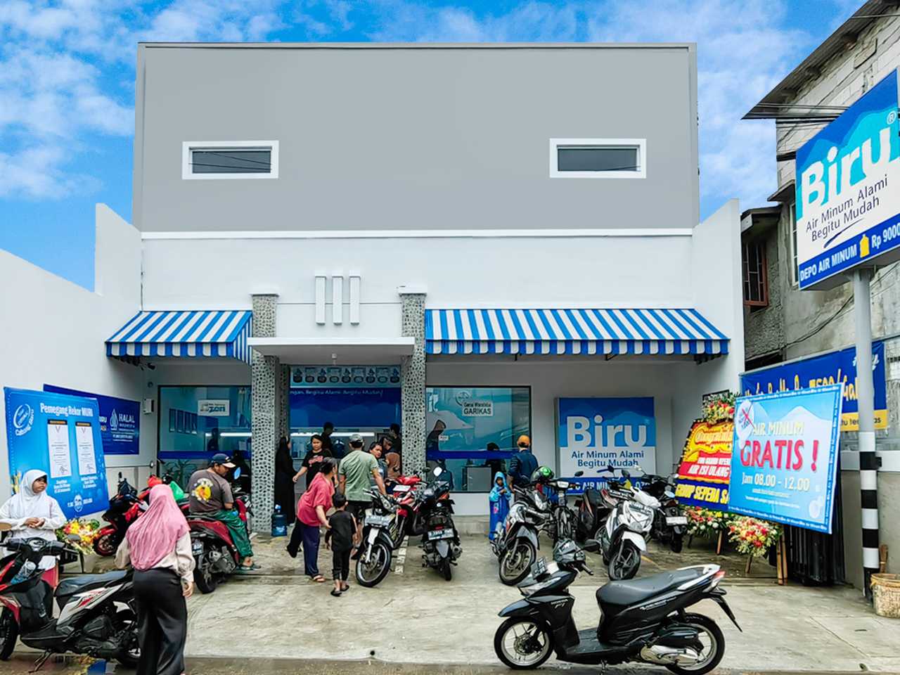 Dalam grand opening, Depo Air Minum Biru Garikas dan Depo Air Minum Biru Taman Malaka Selatan memberikan promo gratis isi ulang galon. Masyarakat sekitar dapat mengisi ulang galon kosongnya dengan Air Minum Biru secara gratis mulai pukul 08.00-12.00. Antusias pelanggan terlihat, sejak pagi hari pelanggan telah memadati Depo Air Minum Biru untuk mengisi ulang galon kosongnya gratis dengan Air Minum Biru. Ditemui saat mengantri, salah satu pelanggan merasa senang dan bersyukur dengan adanya program promosi gratis.