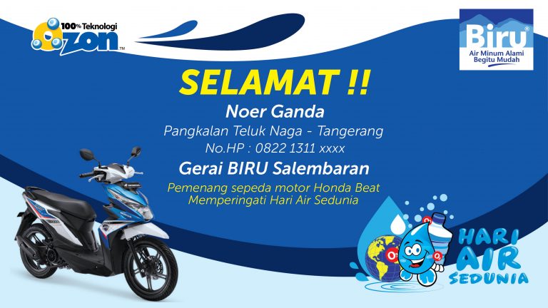 Noer Ganda dari Gerai Biru Salembaran Tangerang Beruntung Mendapatkan 1 Unit Sepeda Motor Honda Beat dalam Gebyar Undian Hari Air Sedunia.