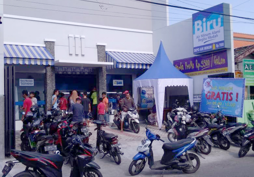 Fasilitas air bersih siap minum sebabkan pemborosan sumber daya karena hanya kurang dari 10% air rumah tangga digunakan untuk minum. Biru dorong pemerintah produksi air minum secara terdesentralisasi. Harian Kompas (...