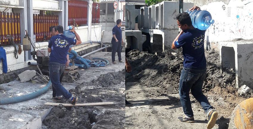 Pembangunan saluran air (gorong-gorong) di depan Depo Air Minum Biru Petemon Sidomulyo (PO) menutup akses transportasi keluar masuk kendaraan bermotor ke gerai. Meski pelanggan kesulitan akses masuk, karyawan Biru PO...